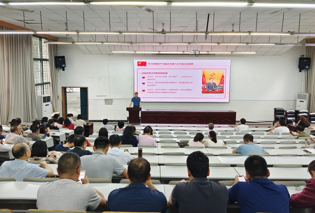 首先,李余廷书记带领大家学习了中国共产党重庆市第六次代表大会精神。他指出,中国共产党重庆市第六次代表大会,是在党的二十大即将召开,我市奋力推进社会主义现代化建设新征程关键时期召开的一次重要会议。全会聚焦把习近平总书记殷殷嘱托全面落实在重庆大地上这条主线,紧扣习近平总书记对重庆提出的营造良好政治生态,坚持“两点”定位、“两地”“两高”目标、发挥“三个作用”和推动成渝地区双城经济圈建设等重要指示要求,系统总结了过去五年重庆的发展成绩,深刻回答了今后五年建设什么样的重庆、怎样建设重庆的战略性问题,并提出了三项重大任务、六个方面目标,科学谋划了未来一个时期重庆高质量发展、高品质生活的美好蓝图。他强调,全会充分体现了以习近平同志为核心的党中央推动重庆新时代高质量发展、创造巴渝儿女高品质生活的时代主题,是重庆全面建设社会主义现代化新征程发出的动员令和冲锋号。接下来,菠菜论坛 要把学习宣传贯彻重庆市第六次党代会精神作为当前和今后一个时期的重要政治任务,多层次、多角度抓好宣传宣讲,迅速将第六次党代会的精神实质传达到每一位师生,全力以赴推动市第六次党代会精神在菠菜论坛 落地落实、见到实效,以实干实绩迎接党的二十大胜利召开。