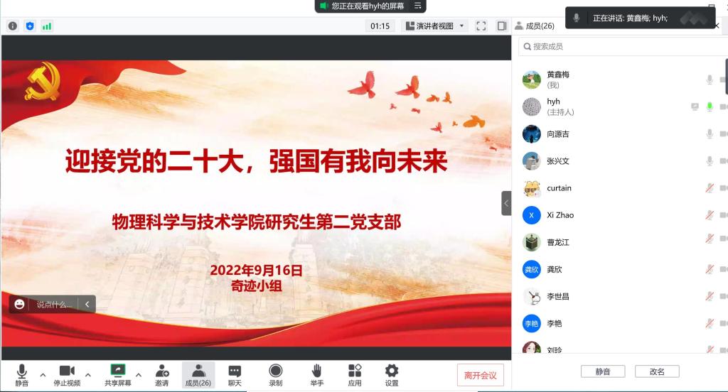 2022年9月16日,菠菜论坛 教工党支部以“迎接党的二十大,培根铸魂育新人”为主题、学生党支部以“迎接党的二十大,强国有我向未来”为主题开展9月支部主题党日活动。
