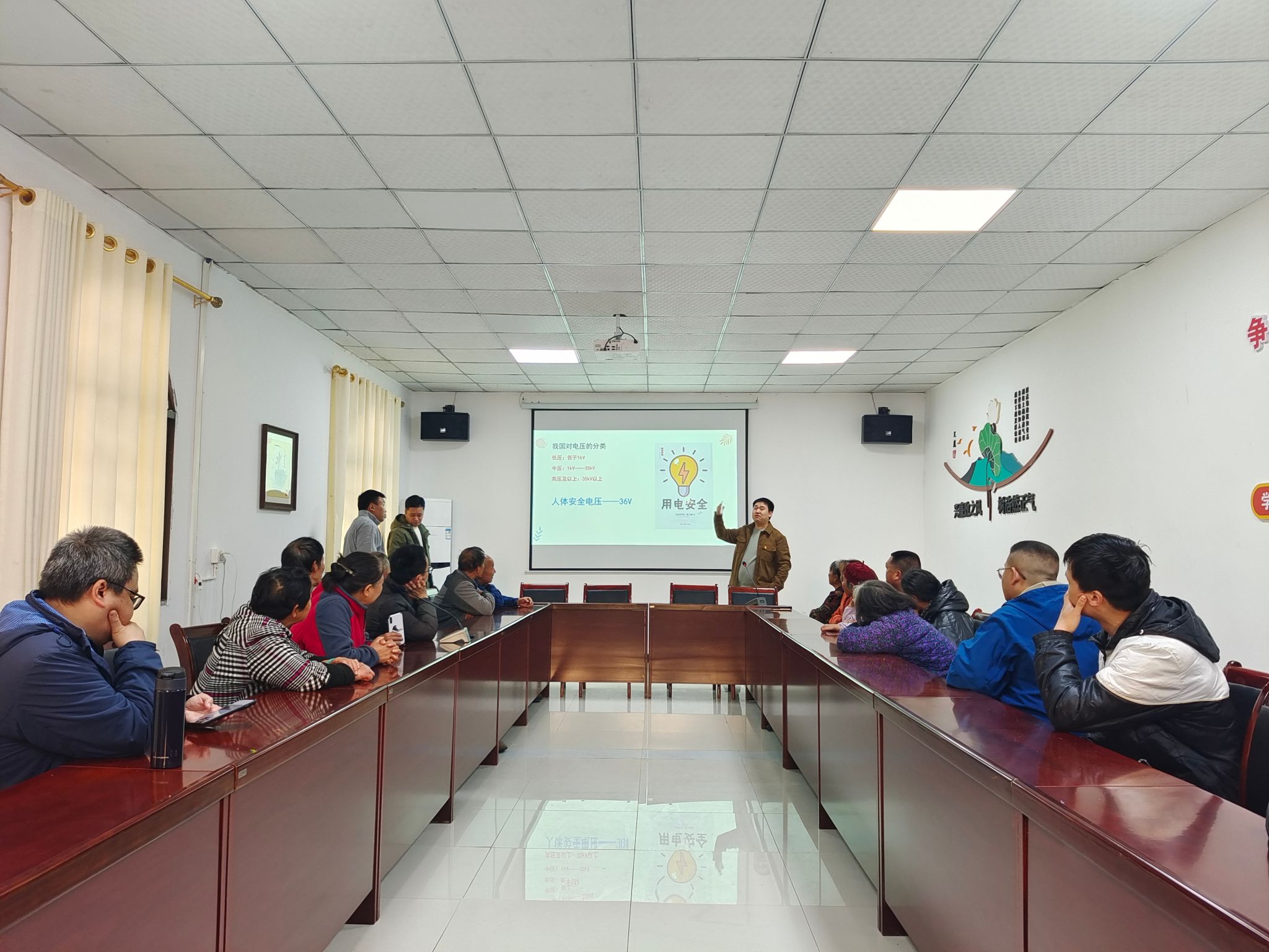 随后,在文风村委会活动室,围绕村民普遍关注的“冬日如何做到安全用电?”需求,菠菜论坛 教师第四党支部党员许龙副教授和后勤保障部党委第三党支部熊巾深同志先后用生动活泼、贴近村民的语言,从生活中不规范的用电现象、触电与电气火灾的救援、雷电防护以及空开的复位、线路常用接法、灯头灯泡更换、常见故障处理方式等方面,进行了科普讲解和现场示范,并现场回应了村民们的疑问,赢得了参与村民的热烈称赞和一致好评。