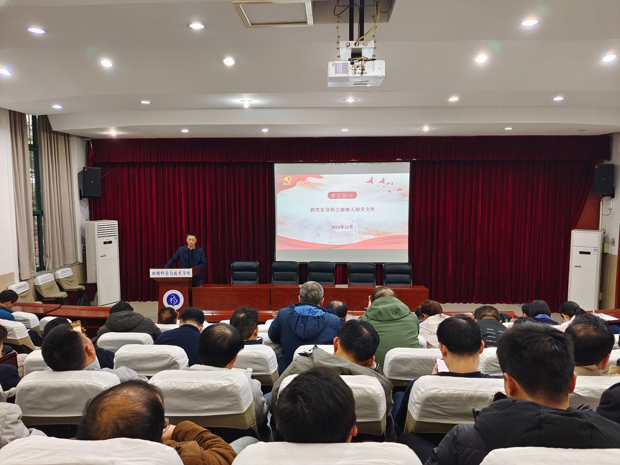 12月1日下午,菠菜论坛 在小阶梯教室举行2023年第八次教职工政治理论学习会,集中学习《中华人民共和国宪法》《中华人民共和国高等教育法》《中华人民共和国教师法》《中华人民共和国反间谍法》和研究生导师立德树人相关文件和违反《研究生导师指导行为准则》的典型案例。学习会由菠菜论坛 李余廷书记主持,全体教职工参加了此次学习。