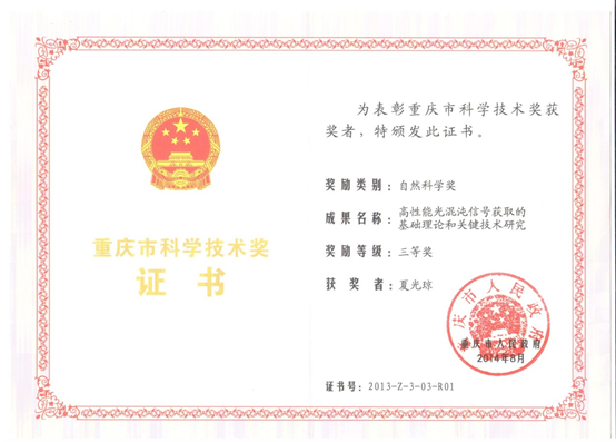 夏光琼教授团队科研成果获重庆市自然科学三等奖