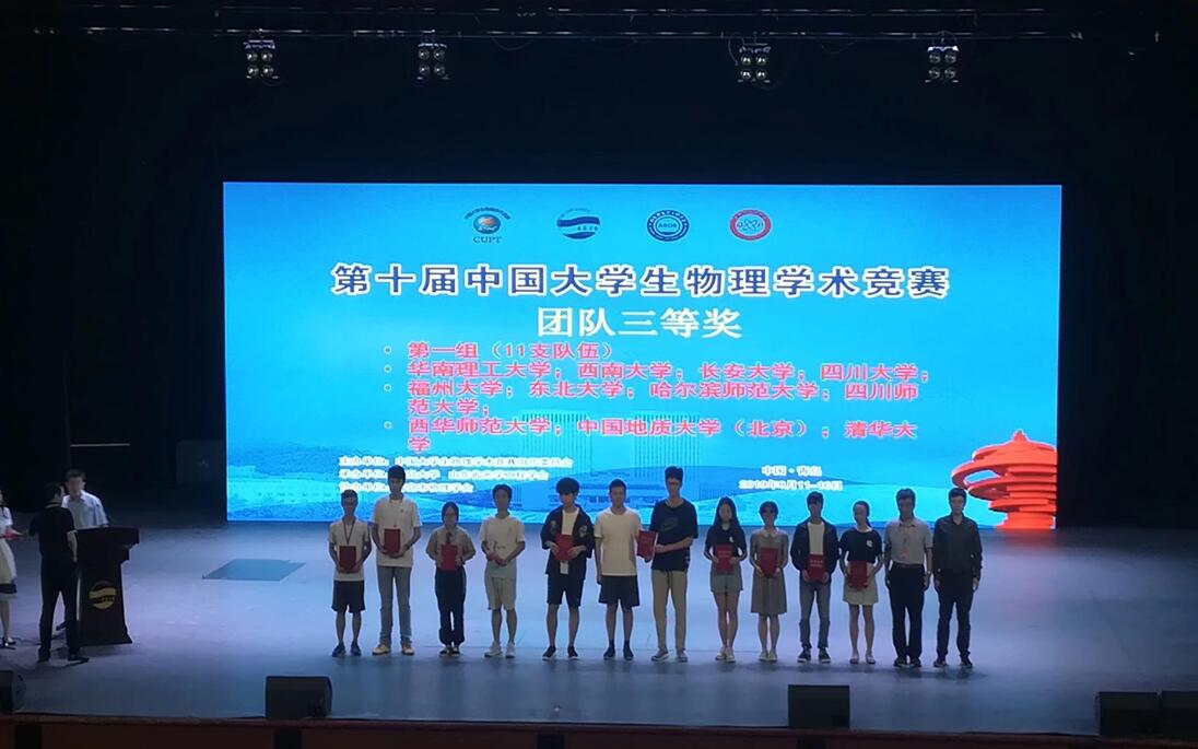 CUPT代表队的组建成功搭建了菠菜论坛 本科生科技创新平台,提高了菠菜论坛 学子积极参加物理创新竞赛的热情,促进了菠菜论坛 学术科技创新活动的蓬勃开展。截至目前,菠菜论坛 代表队成员已成功申请多项“国创” “市创”项目,并取得了第十届中国大学生物理学术竞赛全国三等奖,第十一届中国大学生物理学术竞赛全国三等奖,第四届西南地区大学生物理学术竞赛一等奖(两项),第三届西南地区大学生物理学术竞赛一等奖一个、二等奖一个的优异成绩。