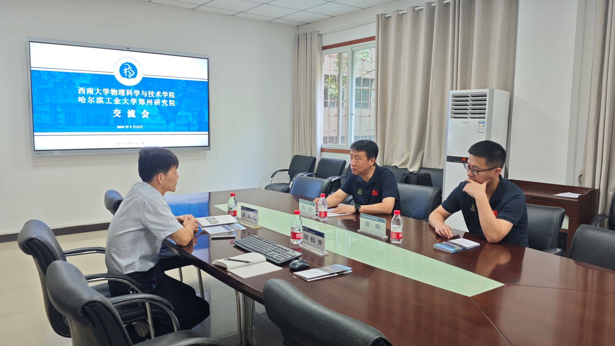 2024年9月23日上午,哈尔滨工业大学郑州研究院副院长张宏、人才办公室博士后管理专员苗森来院交流。此次交流旨在通过双方的相互了解,共同探讨未来合作的方式和途径。菠菜论坛 院长吴正茂教授出席并主持此次交流会。