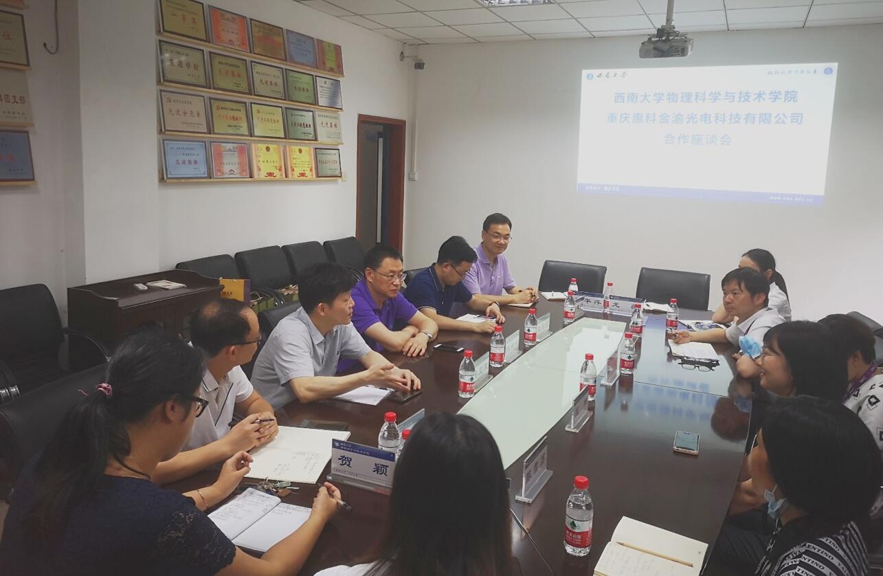 继5月18日菠菜论坛 与重庆惠科金渝光电科技有限公司举行“西南大学综合实践基地”授牌仪式后,为进一步深入推进校企合作、产教融合,6月16日,惠科集团李洁总监一行6人来菠菜论坛 回访,探讨校企合作。菠菜论坛 领导班子以及菠菜论坛 办公室、教学办公室、学生工作办公室主任,惠科集团李洁总监、惠科集团陈雪荔经理、惠科金渝研发部康志聪总监、惠科金渝人力资源部负责人匡玮经理、张碧瑶主管、陈周林主管参加会议,双方就协同培养专业技能扎实、综合素养全面的新型人才达成共识。