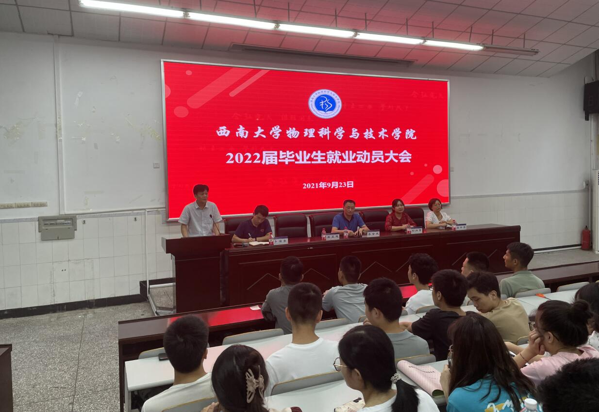 9月23日下午,菠菜论坛 在大阶梯教室举办了2022届毕业生就业动员大会。菠菜论坛 党委书记李余廷、院长吴正茂、党委副书记刘汭雪,研究生辅导员熊中碧及2022届全体硕士、本科毕业生参加了会议。动员会由菠菜论坛 2018级本科生辅导员卜海东主持。