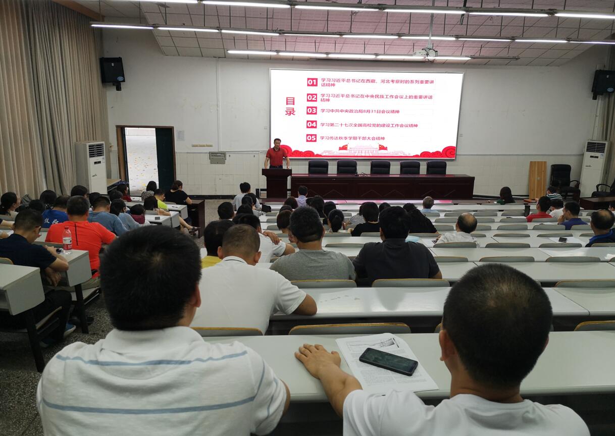 最后,李书记从学校暑期工作情况、秋季学期工作的总体要求和重点工作等方面向与会教职工传达了学校秋季学期干部大会精神,并带领大家一起学习了高校网络安全知识。