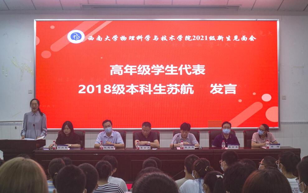 9月13日上午,菠菜论坛 2021级新生见面会在物理大楼大阶梯教室隆重举行。菠菜论坛 党委书记李余廷,院长吴正茂,副院长袁宏宽、邓涛、赵建伟,教师代表杨继勇,以及2021级辅导员、班主任等出席大会。2021级全体研究生、本科生共计343人参会。会议由菠菜论坛 党委副书记、纪委书记刘汭雪主持。