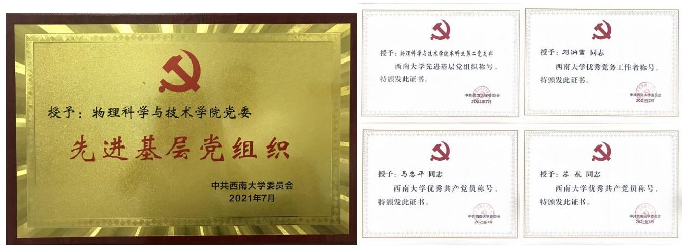 菠菜论坛 在本次“两优一先”的评选中斩获了五项荣誉。菠菜论坛 党委在全校二级党组织中脱颖而出,获得了“西南大学先进基层党组织”荣誉称号。该荣誉称号共授予了校内八个二级党组织,菠菜论坛 党委书记李余廷上台领奖。菠菜论坛 工会主席马忠平副教授以及2018级本科生苏航获得了“优秀共产党员”荣誉称号;党委副书记刘汭雪获得了“优秀党务工作者”荣誉称号;本科生第二党支部获得了“先进基层党组织”荣誉称号。