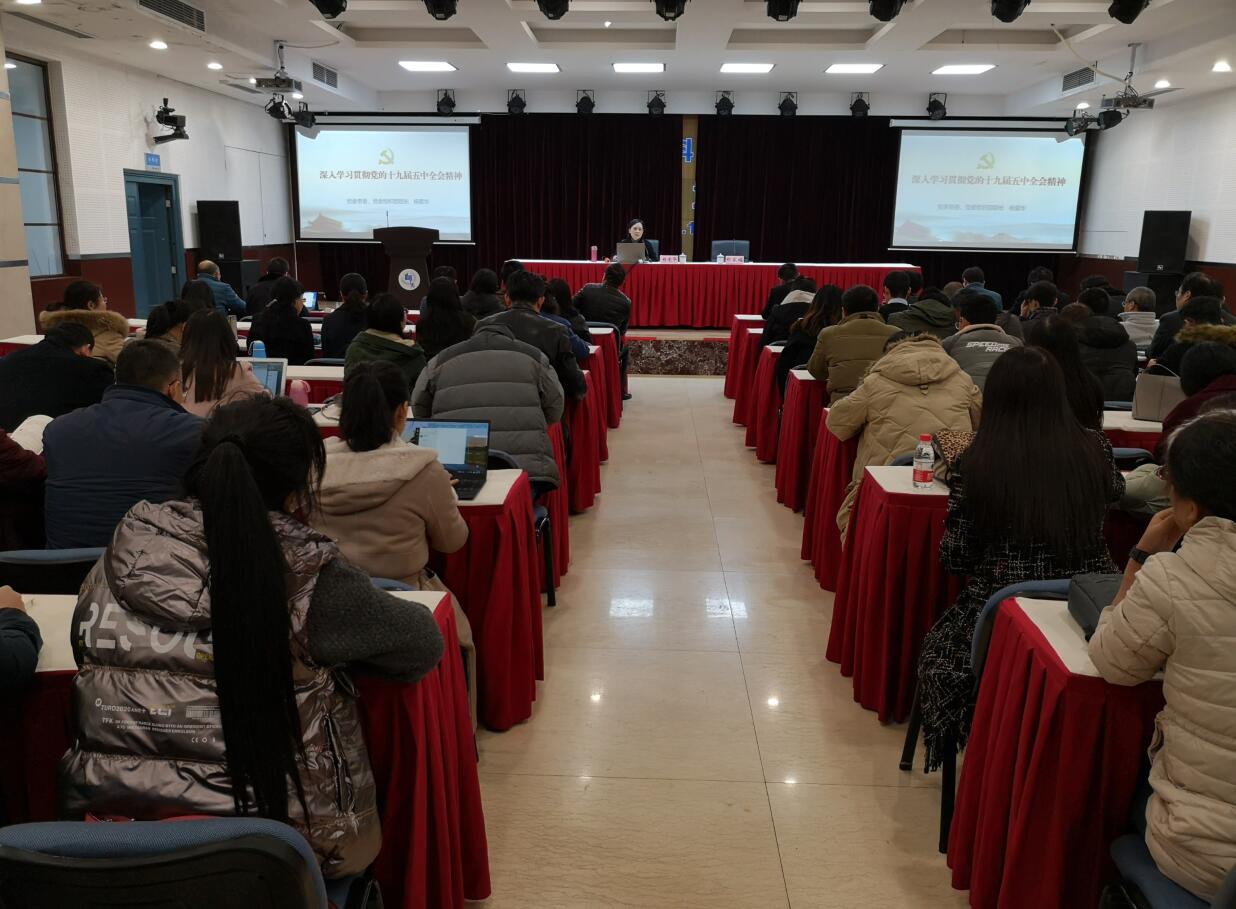 12月11日下午,菠菜论坛 在教师教育菠菜论坛 师元讲堂举行2020年第8次党委理论学习中心组(扩大)学习,听取学校党委常委、组织部部长杨爱华同志作《深入学习贯彻党的十九届五中全会精神》专题辅导报告。菠菜论坛 领导班子成员、党委委员、纪委委员、党支部书记及全体教职工党员参会。