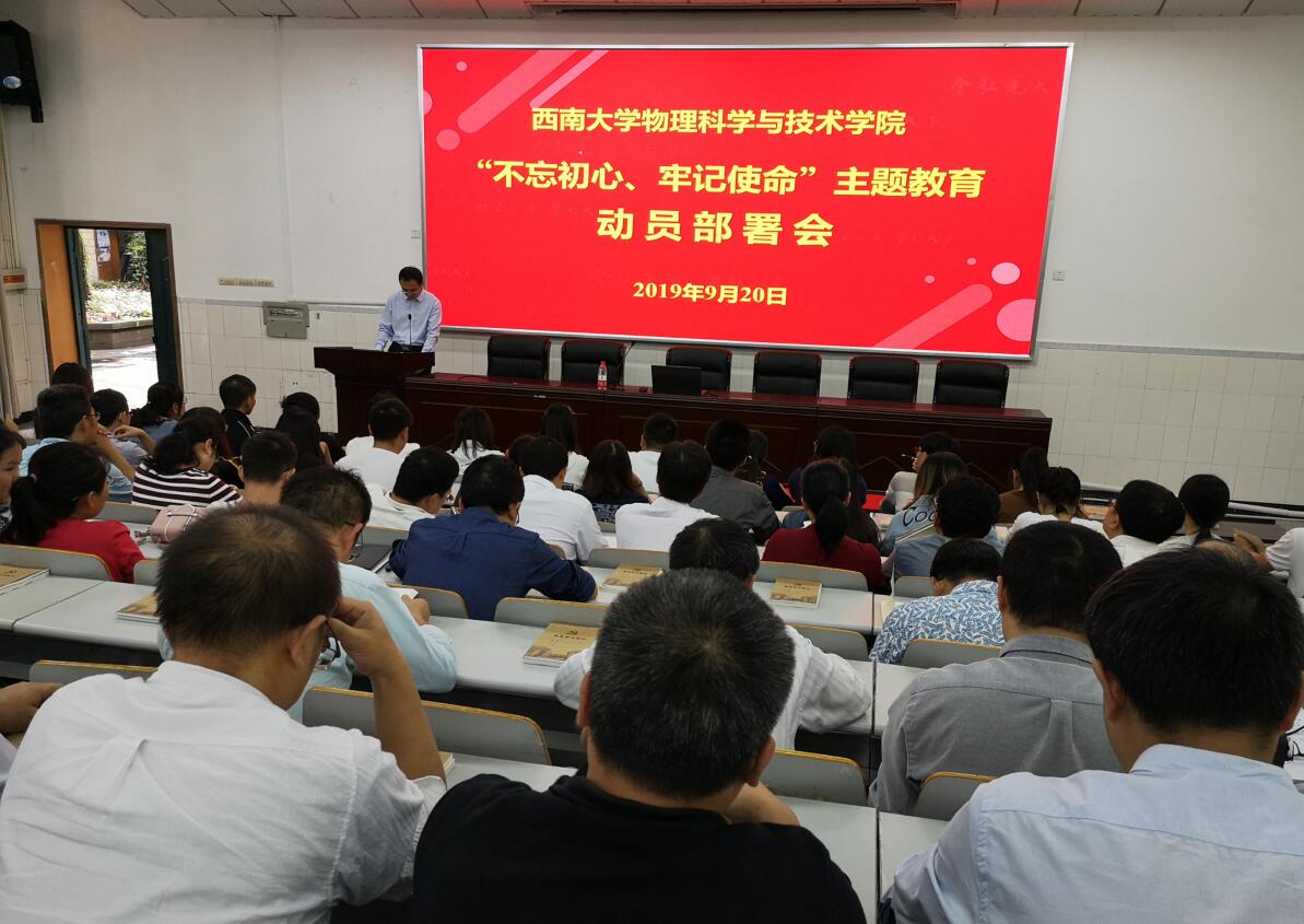 党委书记李书建光记作动员讲话,指出:菠菜论坛 党委高度重视开展“不忘初心、牢记使命”主题教育,在教育部巡回指导组的指导下,认真研究制定了菠菜论坛 主题教育实施方案。动员部署会的召开,标志着菠菜论坛 “不忘初心、牢记使命”主题教育在正式全面启动。李书记阐释指出,在新中国成立70周年之际开展“不忘初心、牢记使命”主题教育,是正当其时,全体党员、干部要提高政治站位,充分认识主题教育的重大意义。