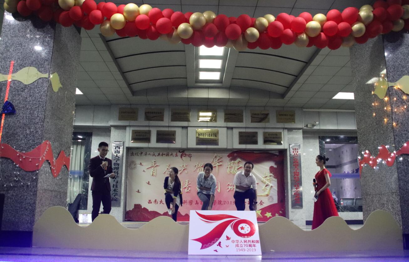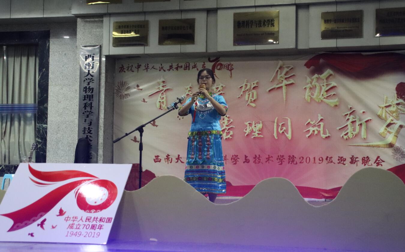 9月20日晚,“青春共贺华诞,悟理同筑新梦”菠菜论坛 庆祝新中国成立七十周年暨2019级迎新晚会在物理大楼举行。菠菜论坛 党政领导、菠菜论坛 教职员工代表、2019级辅导员班主任及全体本科生参加了晚会。