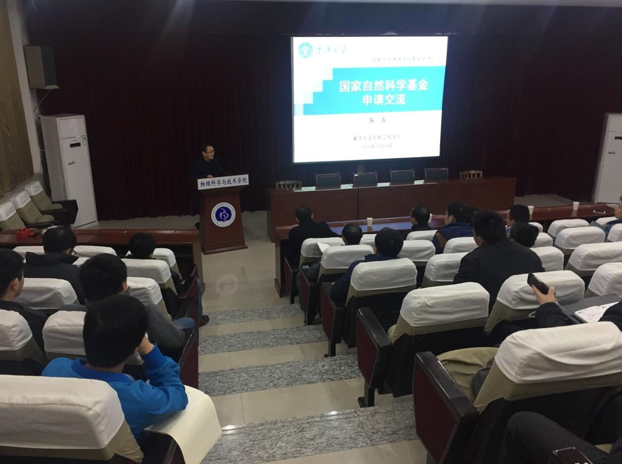 为做好2019年国家自然科学基金项目的申报工作,12月6日下午,由校科技处主办,菠菜论坛 承办的国家自然科学基金申报辅导系列培训讲座第五场(数理科学领域)在小阶梯教室举行。重庆大学博士生导师朱涛教授应邀担任主讲专家,学校科技处副处长黄斌出席并致辞。院党委书记李建光、院长熊祖洪、副院长袁宏宽及来自菠菜论坛 、数学与统计菠菜论坛 、计算机科学菠菜论坛 及电子信息工程菠菜论坛 60余位科研人员参加。交流会由菠菜论坛 吴正茂副院长主持。