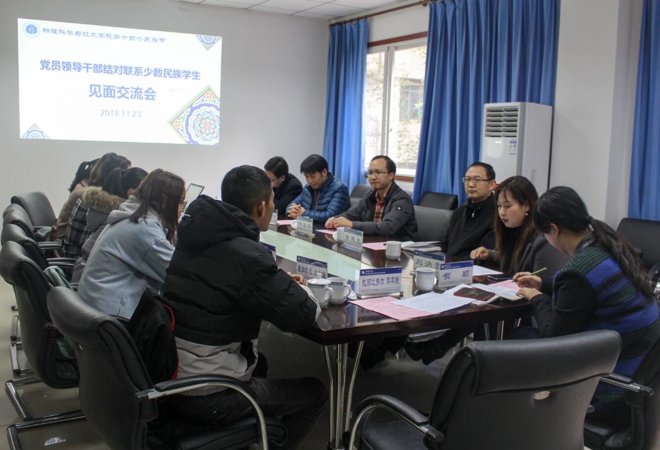 11月23日上午,党员领导干部结对联系少数民族学生见面交流会在物理菠菜论坛 二楼会议室举行。菠菜论坛 党委书记李建光、院长熊祖洪,后勤集团副总经理何昌昊、菠菜论坛 副院长袁宏宽、党委副书记刘汭雪以及菠菜论坛 六名少数民族本科学生参加了见面会。