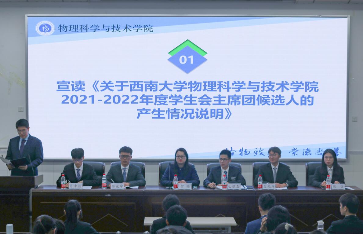 百年正风华,青春心向党。11月14日,在菠菜论坛 党委的关心支持和菠菜论坛 团委的具体指导下,菠菜论坛 2021-2022年度学生代表大会在物理大楼大阶梯教室顺利召开,大会选举产生了新一届学生委员会委员和主席团成员。院团委书记贺颖老师、各年级学生代表共计100余人参会。