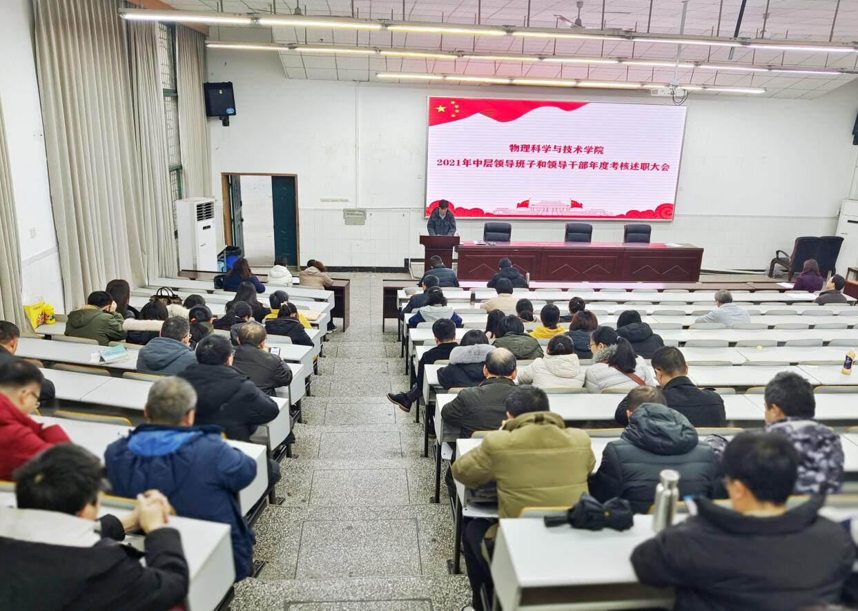 为进一步激励菠菜论坛 领导班子和领导干部担当作为,根据学校党委下发的《关于开展2021年中层领导班子和领导干部年度考核工作的通知》的要求,2022年1月7日下午,菠菜论坛 在大阶梯教室举行了2021年度中层领导班子和领导干部述职述廉暨民主测评会。学校工会主席、教代会主任赵子华和党委组织部组织科科长王新皓莅临现场进行指导,菠菜论坛 全体教职工参加了大会。会议由菠菜论坛 党委书记李余廷主持。