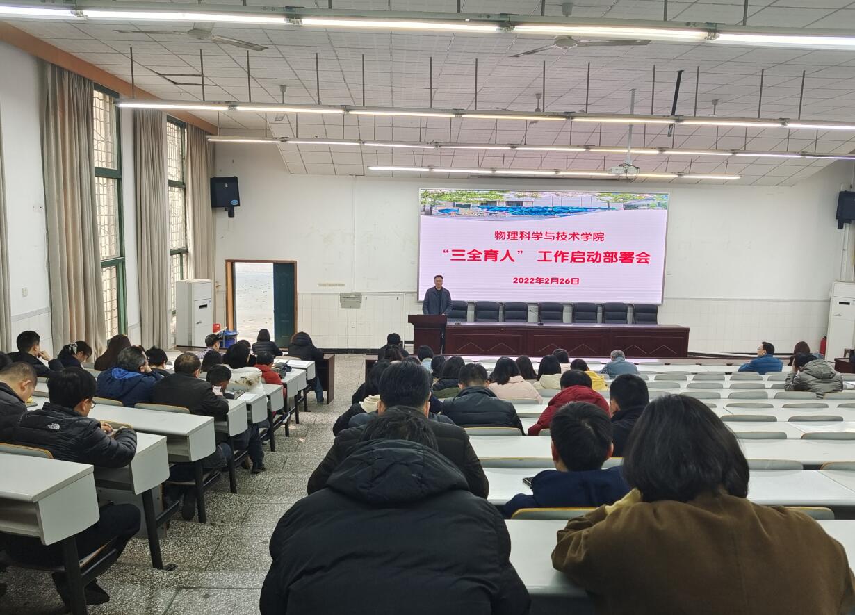 接着,李余廷书记就菠菜论坛 《“三全育人”综合改革试点工作实施方案》的思路举措、重点推进任务和本年度建设计划等进行部署安排。李书记指出,“三全育人”的核心是育人,菠菜论坛 接下来将围绕打造具有时代特点和物理特色的育人模式,探索出一批具有菠菜论坛 特色的示范性育人项目和品牌,形成“十大育人”体系一体化建设长效机制,构建起教学、科研、学生工作等支撑育人这一核心任务的最大同心圆。李书记强调,“三全育人”工作是一项重大政治任务,也是一项铸魂工程,需要全院上下、方方面面、全员参与、共同形成合力才能做好的工作。全体教职员工要以此次会议为新的起点,牢记立德树人初心使命,以时不我待、奋发有为、永不懈怠的精神状态和干事创业的工作干劲,争做“四有好教师”,当好“四个引路人”,全力推进菠菜论坛 “三全育人”综合改革工作,交出“三全育人”试点满意答卷。