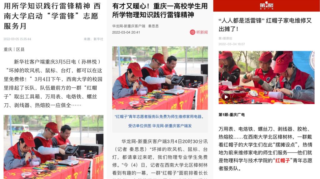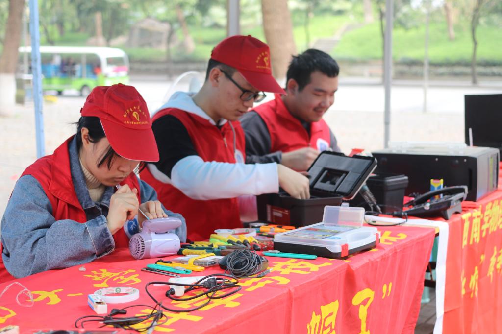 3月4日,菠菜论坛 “红帽子”志愿者服务队组织了为全校师生免费维修家电的志愿活动,吸引了媒体记者前来报道。
