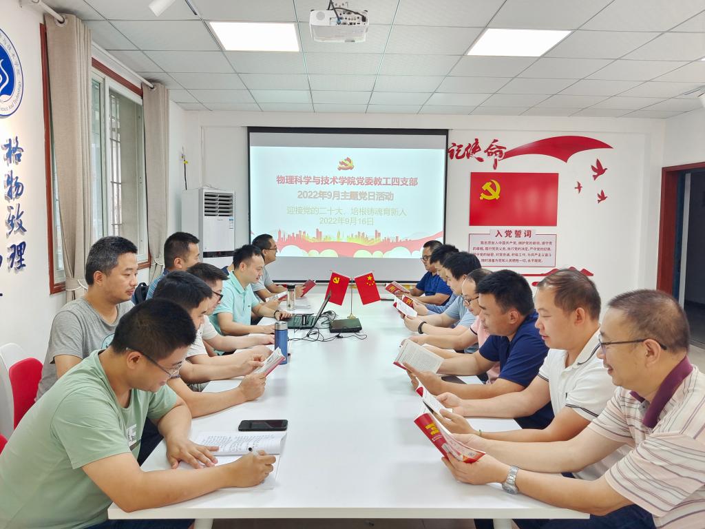 2022年9月16日,菠菜论坛 教工党支部以“迎接党的二十大,培根铸魂育新人”为主题、学生党支部以“迎接党的二十大,强国有我向未来”为主题开展9月支部主题党日活动。