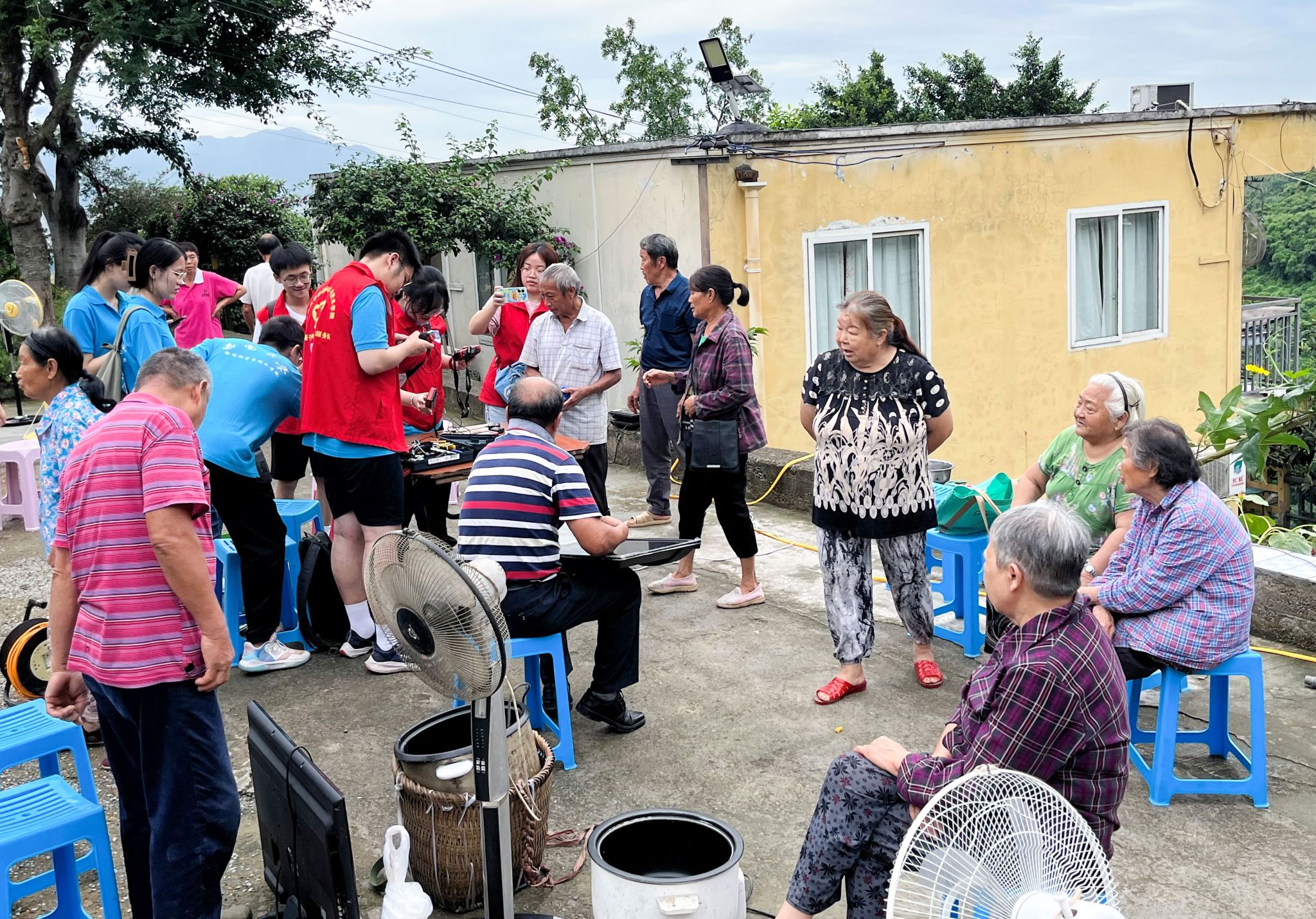 从长滩村村委会院坝,到白沙井街边摆点,再到方便困难群众的入户维修,实践团开展了为期三天的义务家电维修。烈日炎炎,却丝毫不减“红帽子”志愿者的严谨和热情。他们先用电笔检查电路,再用电工胶布或者线钳处理故障,最后运行调试、原样交还。从鼠标、台灯、遥控板到电饭煲、电风扇、洗衣机,帮助居民们维修了各类电器四十余件。同时,“红帽子”还就安全用电和生活电器小常识向前来咨询的居民们进行了耐心的宣传和解答。7月4日在白沙井摆点维修时,2022级何洋同学顾不得休息匆匆吃了一包方便面就继续工作,“老百姓陆陆续续越来越多,他们用期待的目光注视着整个维修过程。我觉得这是一种挑战,也是一种幸福,发挥专业所长帮助他人,是一件很有满足感的事情。”