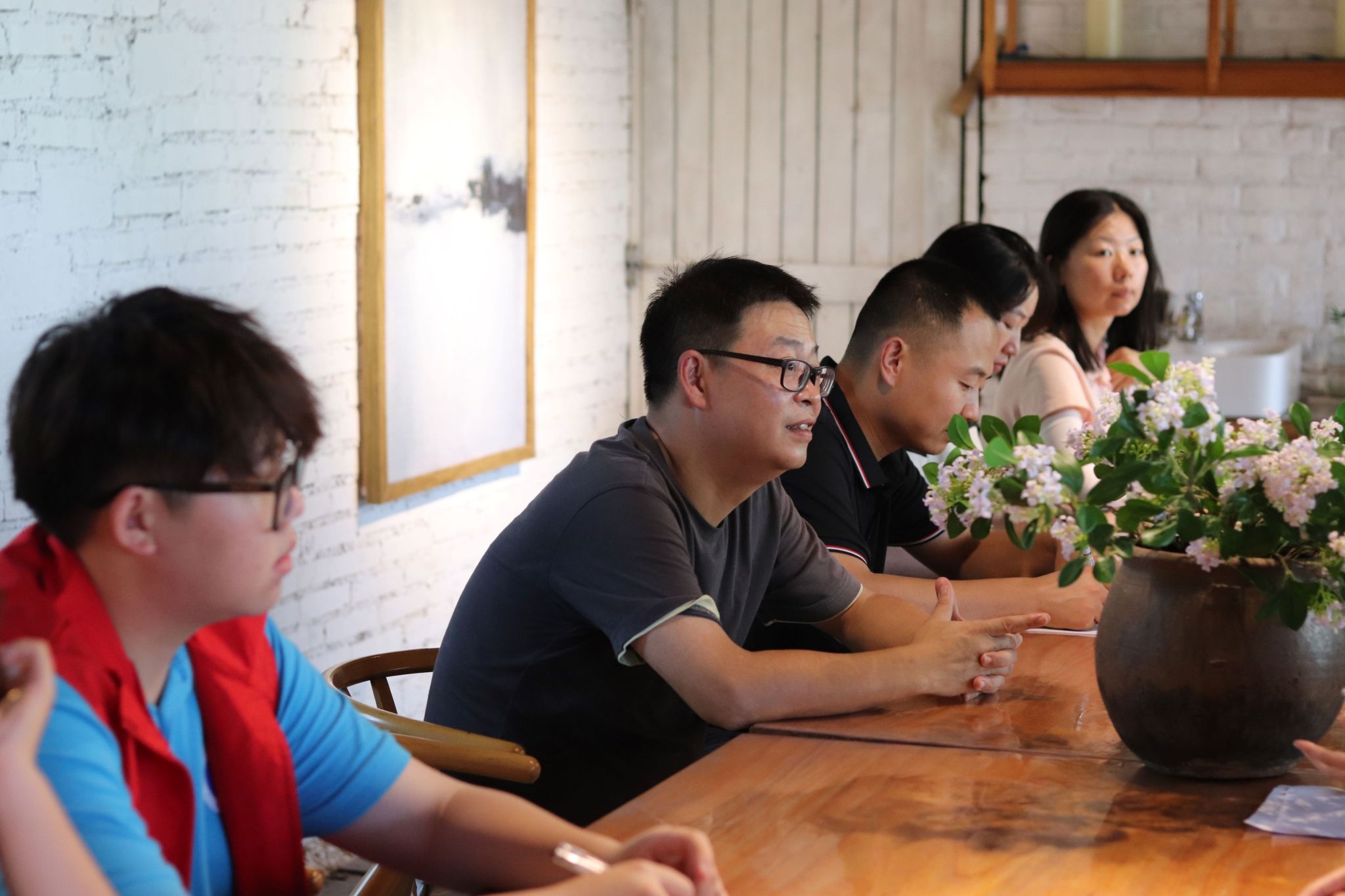 7月5日上午,北居无界民宿的会客室传来阵阵掌声,长滩村驻村第一书记侯晓龙、长滩村党总支副书记张雪莉、北居无界民宿创始人张柏先生与志愿者们围坐在一起,带来了一堂鲜活的思政课。