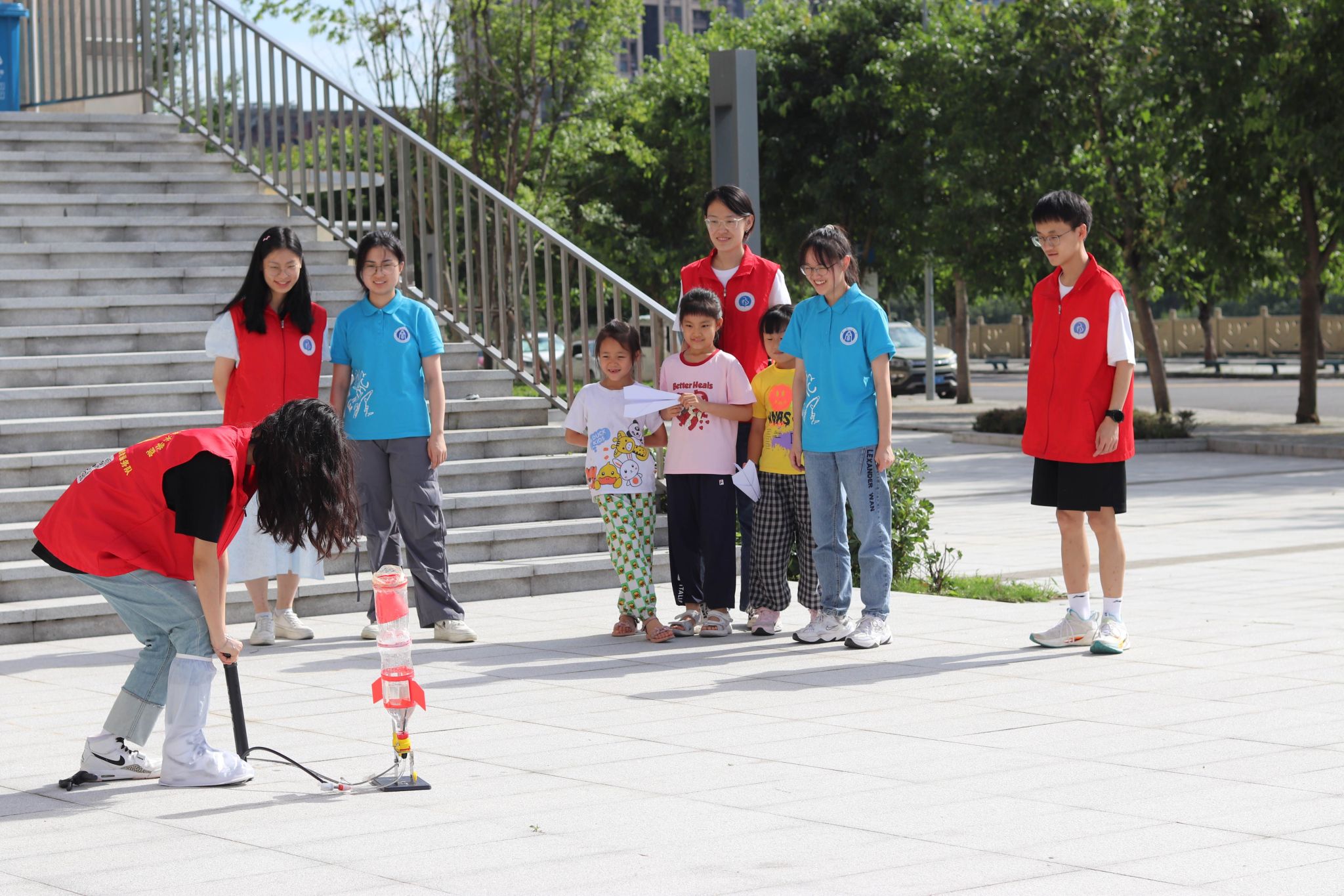 “3、2、1,升空!”7月4日上午在长滩村村委会的院坝里,小朋友们在西南大学科普空间站大哥哥、大姐姐们的指导下装水、加压、发射。竭尽全力地打足气后,水火箭“嘭”的一声升空的那一刹那,小朋友们都欢呼雀跃。7月4日下午在燎原社区会议室里,“怎样折纸飞机才能飞得更远呢?”“下雨天比雷声更早出现的是什么呢?”实践团的小老师们继续为小朋友们带来生动有趣的暑期嘉年华活动。与此同时,针对长滩村居住分散、留守老人多的特点,实践团的成员们积极参与老年健康教育服务,精心准备了两期“温暖夕阳 爱在长滩”老年公益课堂。围绕健康养生、自救自护、防范电信诈骗等主题,以图文并茂、寓教于乐的形式进行了常见疾病的自我管理教育和医保相关政策宣讲。