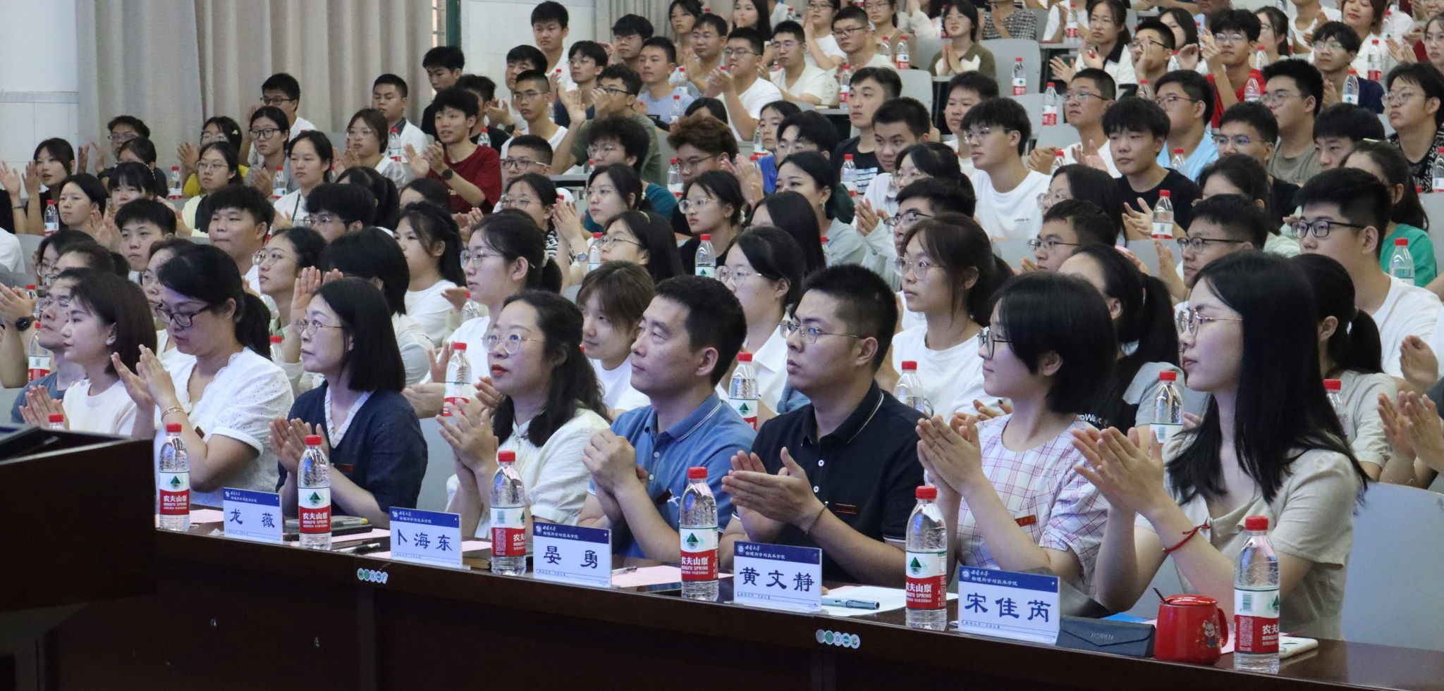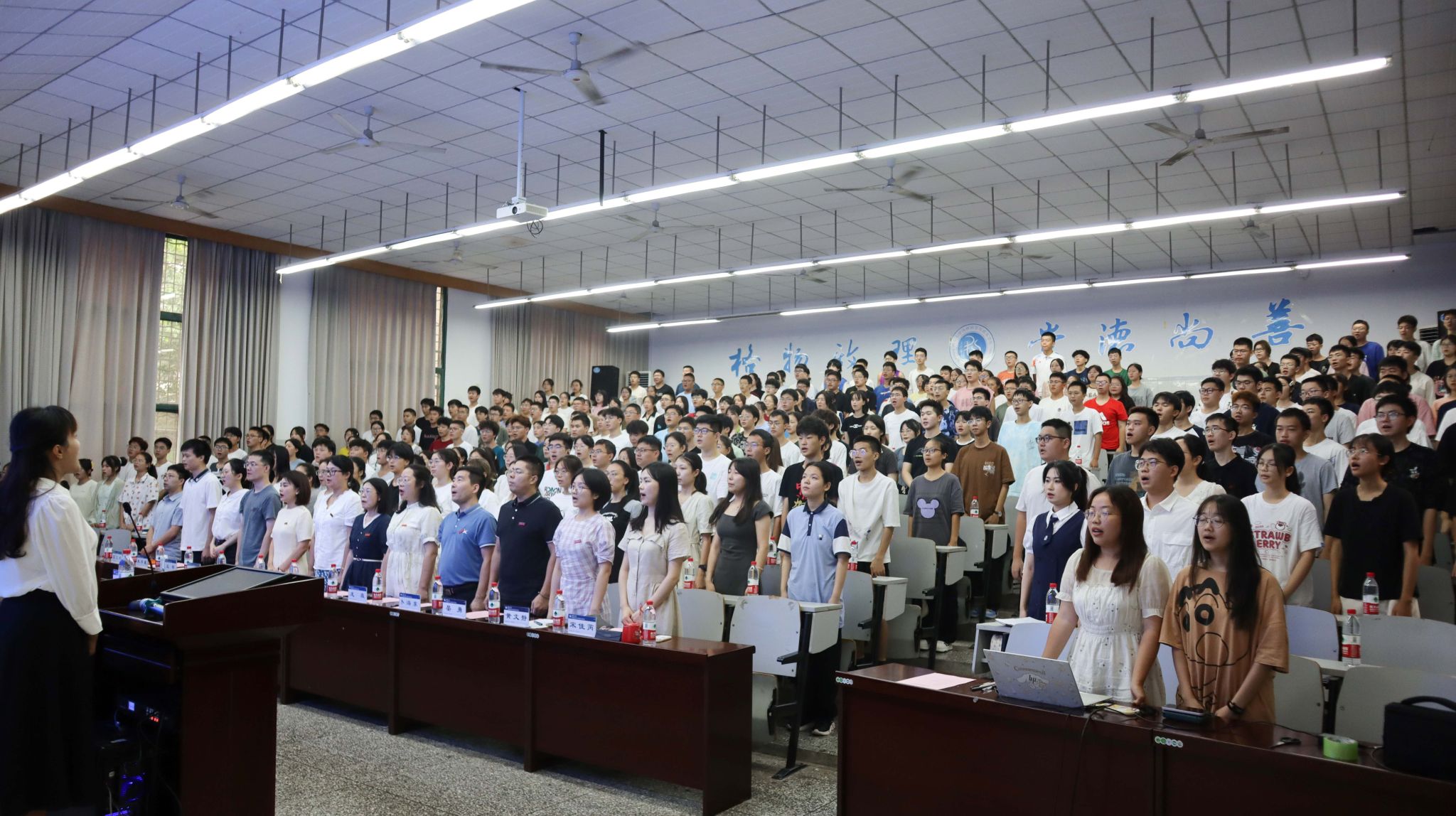 大会最后,全体师生齐唱西南大学校歌,昂扬向上的旋律中谱写着同学们对大学生活的期许,新生见面会在这朗朗歌声中圆满落下帷幕。