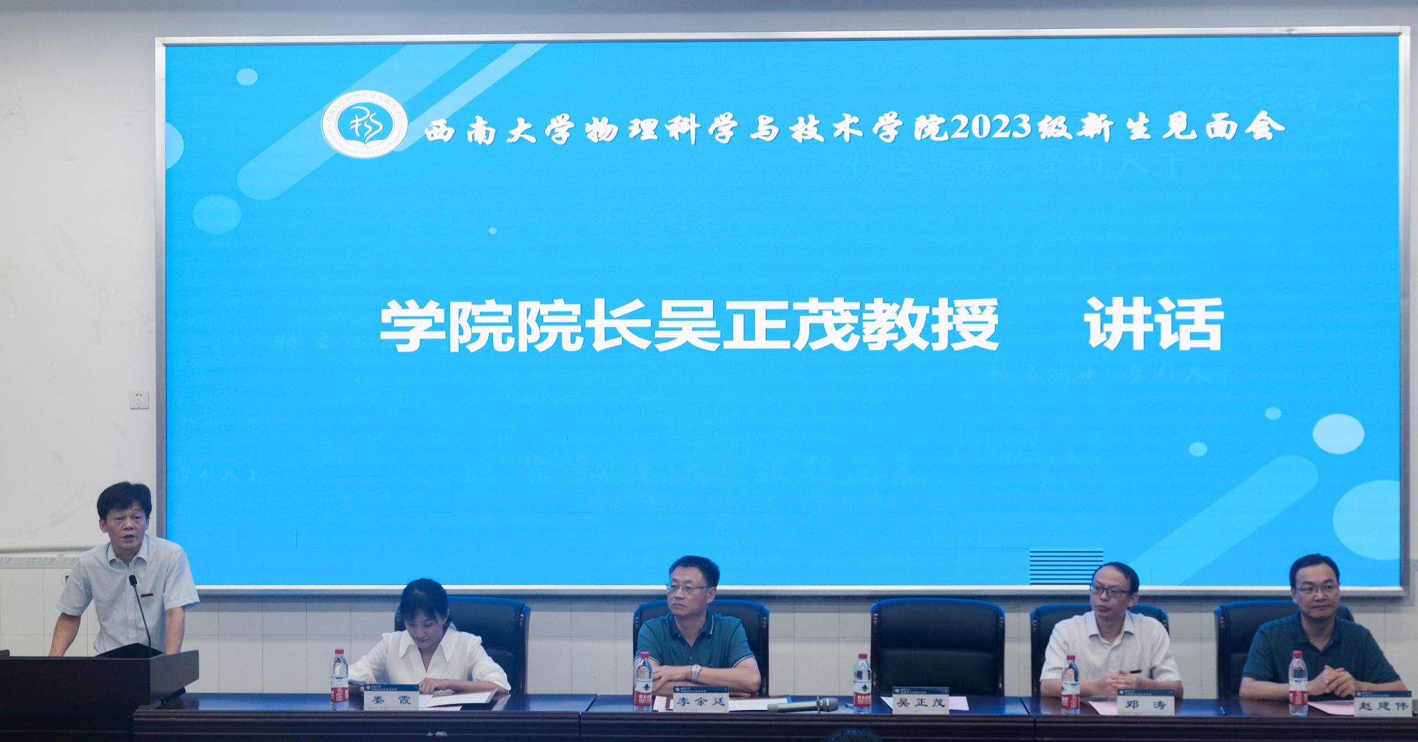 院长吴正茂教授亲切致辞,他代表物院全体师生对2023级的新同学表示了热烈的欢迎和衷心的祝贺。吴院长从物院的办学历史、师资力量、教学条件和科研成果等方面介绍了菠菜论坛 的基本情况。吴院长还对全体新同学提出了殷切希望,他希望大家能树立目标,坚持乐学善学、精益求精的精神荡起奋斗之桨,收获“知行合一”“敏锐观察”“勇于拼搏”的力量,在物理菠菜论坛 寻梦、追梦、圆梦。