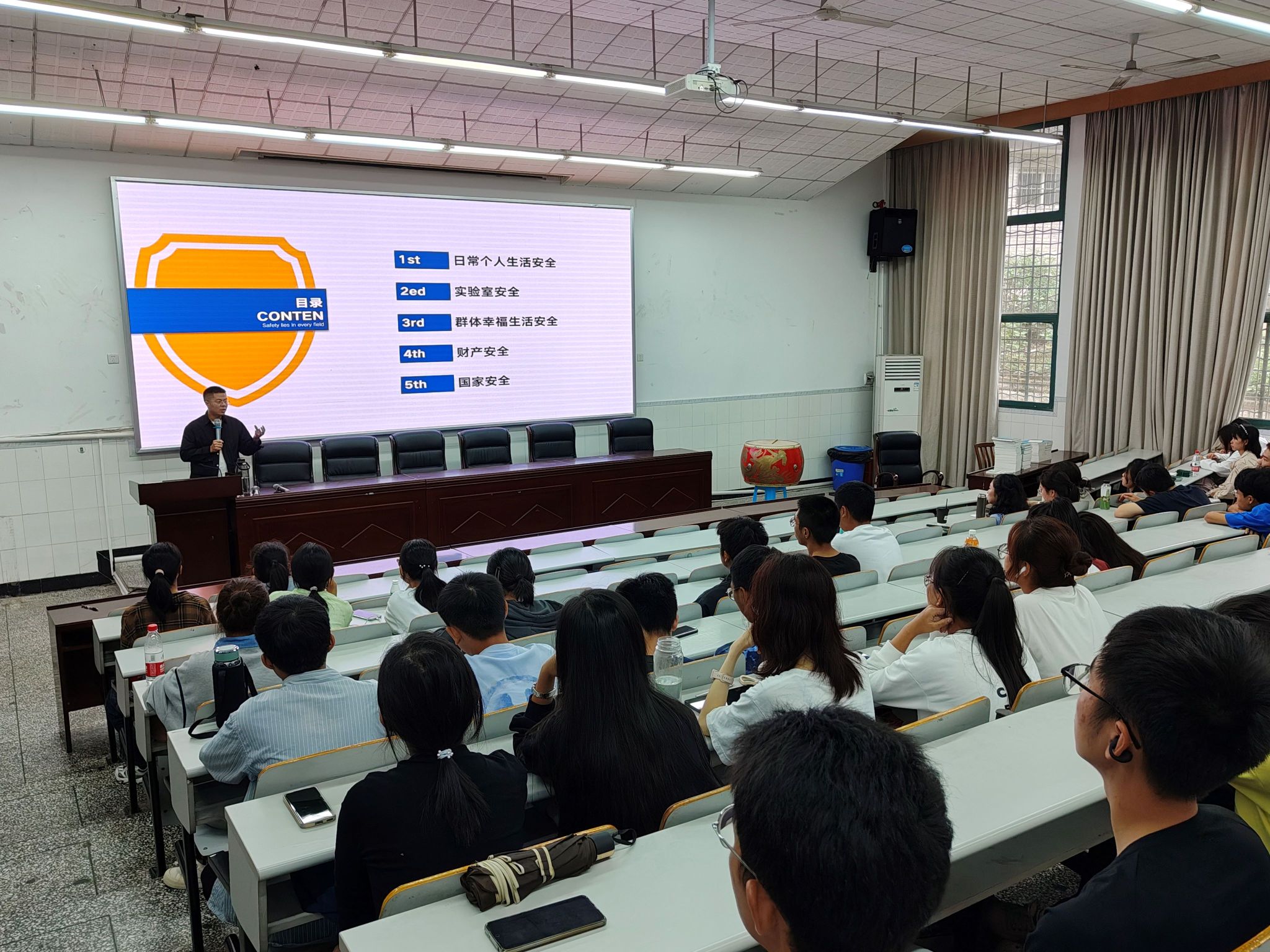9月27日下午,新生辅导员贺颖老师从人际交往、学业适应、情绪管理等方面进行了心理健康教育专题讲座,全面介绍了心理求助渠道和学校心理健康教育资源。安全辅导员晏勇老师聚焦校园生活安全、实验室安全、财产安全、国家安全和电信诈骗安全,结合案例数据强调了安全无小事。