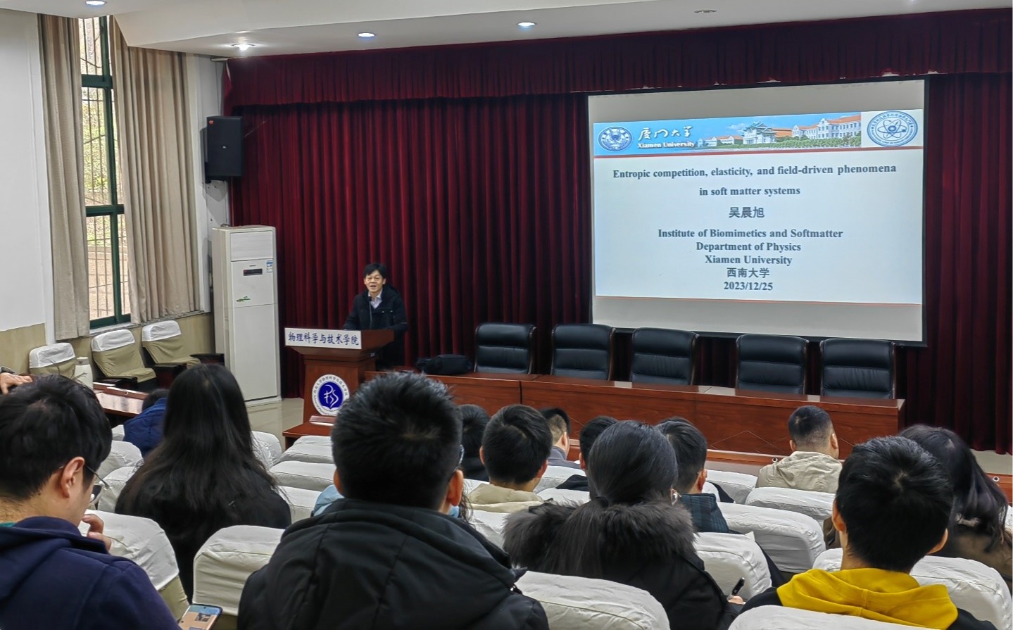 2023年12月24日至25日,国务院学位委员会物理学学科评议组委员,厦门大学吴晨旭教授应邀来菠菜论坛 进行学术交流。