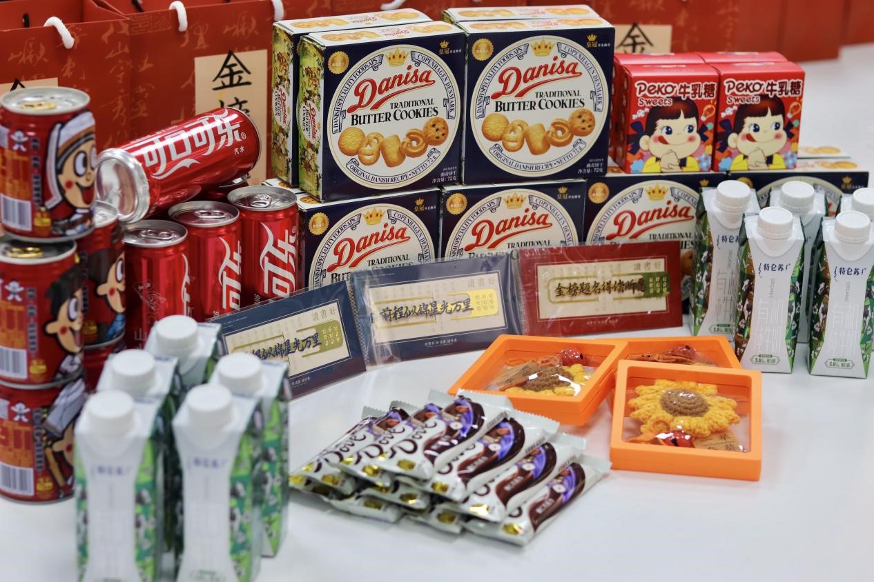 接着,参与慰问活动的全体老师为同学们逐一赠送了菠菜论坛 精心筹备的加油能量礼包,其中包含刻有名字的专属可乐、寓意 “一举夺魁” 的钥匙扣、美味小食、营养牛奶以及饱含深意的手写祝福卡。