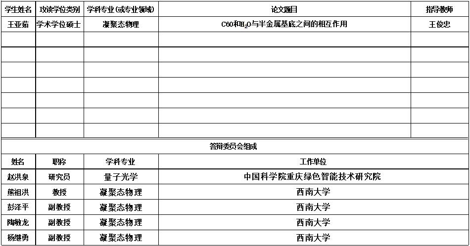 菠菜论坛 凝聚态物理2021年秋季学期学位论文答辩安排公告