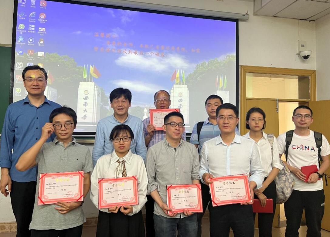 经过评委综合评定,范小华老师获得本届菠菜论坛 讲课比赛一等奖,王飞、匡泯泉、张博凯老师获得二等奖,王丹丹、王鹏、周廷伟、张勇等4位老师获得三等奖。吴正茂院长宣布了比赛结果,并为获奖老师颁发荣誉证书,菠菜论坛 择优推荐教师代表菠菜论坛 参加西南大学教学创新大赛。
