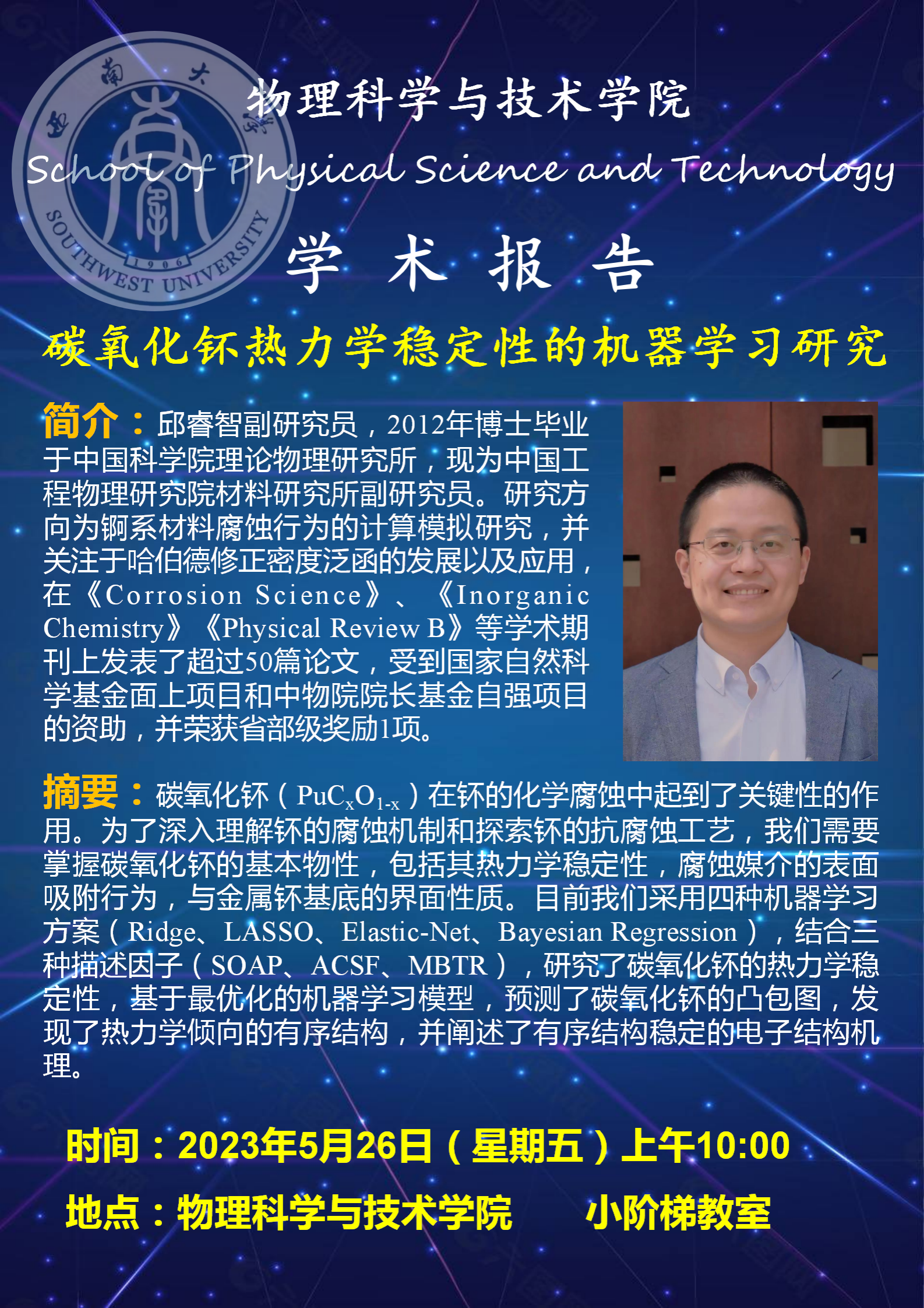 【学术报告】碳氧化钚热力学稳定性的机器学习研究