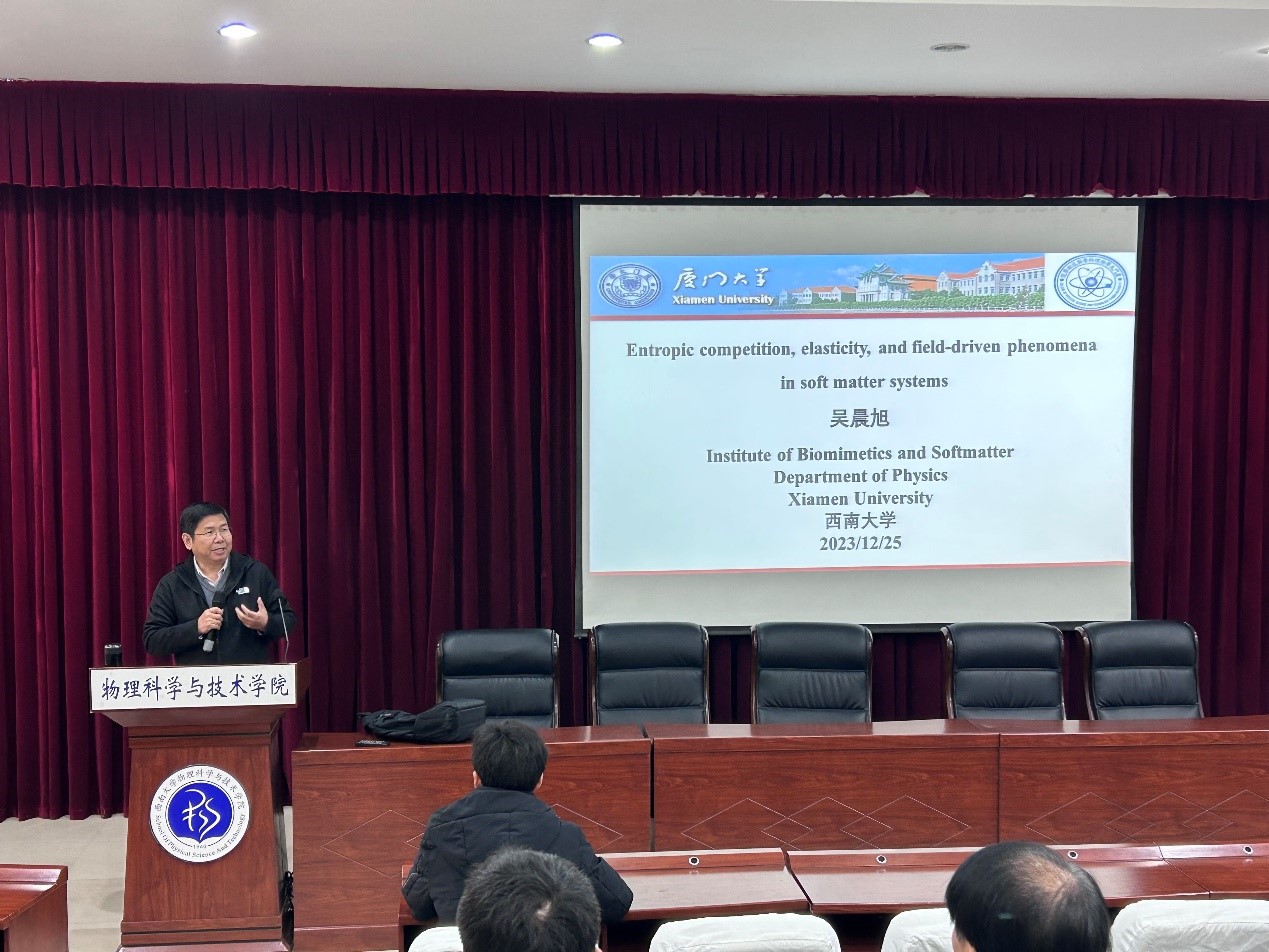 20231224日至25日,国务院学位委员会物理学学科评议组委员,厦门大学吴晨旭教授应邀来菠菜论坛 进行学术交流。