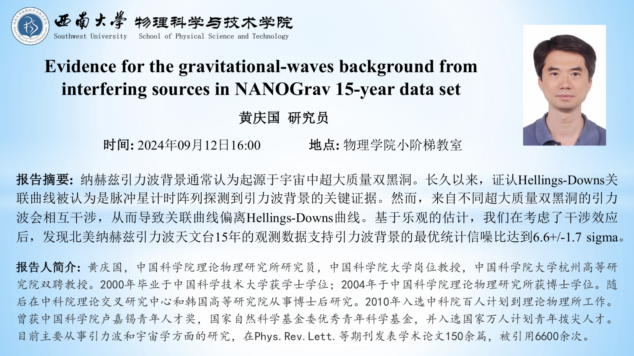 【学术报告】Evidence for the gravitational-waves background from interfering sources in NANOGrav 15-year data set