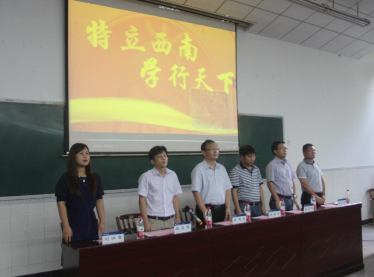 7月10日下午,菠菜论坛 2018级公费(免费)师范毕业生在职攻读教育硕士开学典礼在大阶梯教室举行。菠菜论坛 党委书记李建光、院长熊祖洪、副书记刘汭雪、副院长吴正茂、副院长袁宏宽,教师代表李太华、班主任贺颖、教学秘书熊中碧,以及2018级全体新生参加了开学典礼。开学典礼由吴正茂副院长主持。