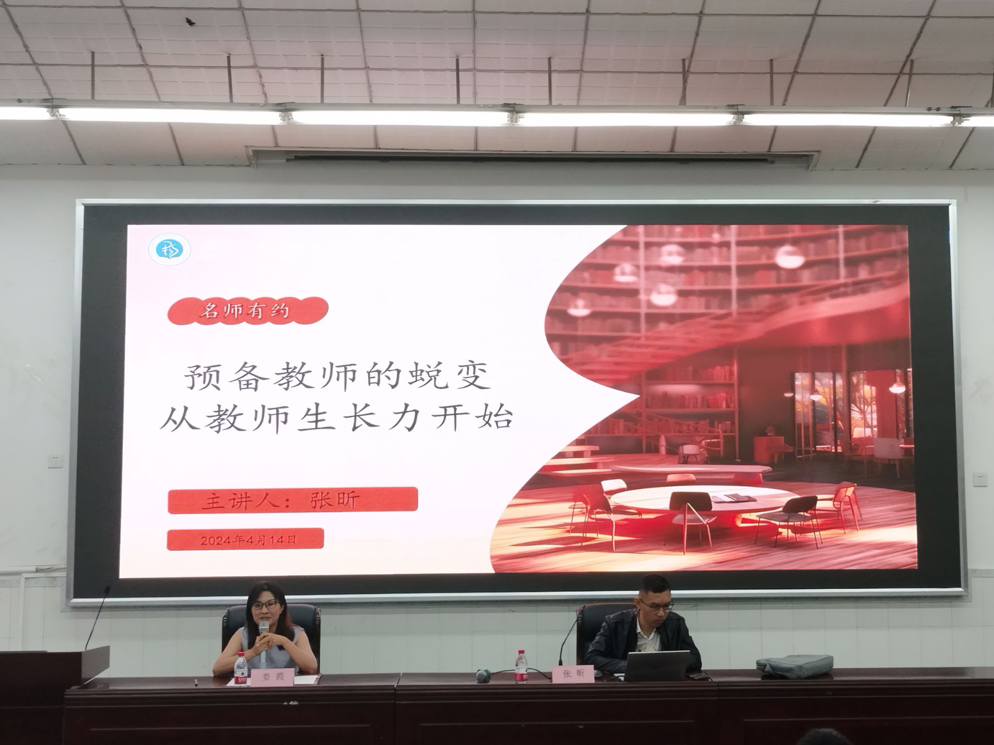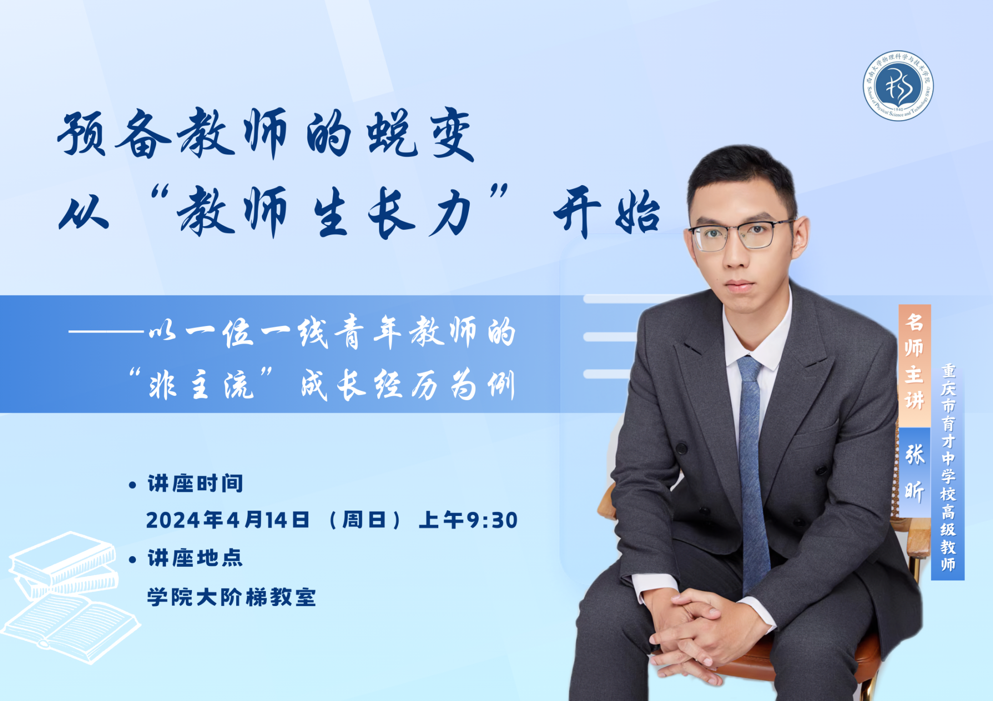 为培育师范生教育情怀,提升师范生综合素养和实践能力,4月14日上午,由菠菜论坛 承办的第一期“名师有约”系列讲座在菠菜论坛 大阶梯教室成功举行。菠菜论坛 邀请了重庆市九龙坡区学科带头人、重庆市育才中学校高级教师张昕,为同学们带来了以“预备教师的蜕变:从‘教师生长力’开始”为题的专题讲座。讲座由菠菜论坛 党委副书记娄霞主持,200余名公费师范生聆听了该讲座。
