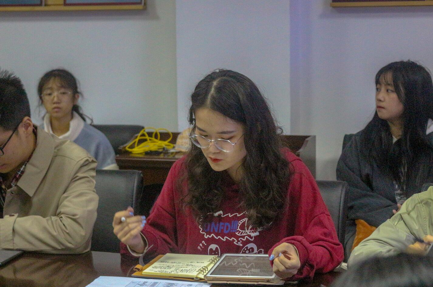 接着,科普社社长2019级刘梦露同学介绍了第三届西南大学物理创新实验竞赛、西南大学附属小学合作开展科普体验营等重要工作的筹备情况。她表示依托立项的“科普空间站”网络工作文化站,科普社计划创作一批精品科普视频、科普文创产品和更优质的科普推文。党员先锋队队长2019级孙小玥同学就持续开展“立惠讲堂”、一对一学业帮扶活动以及先锋队新设机构秘书处等方面进行了介绍。会上,学生代表还就畅通信息渠道、加强调研反馈以及学生权益维护等方面进行了交流,对于同学们提出的问题和建议,刘书记和贺老师给予一一回应和解答。