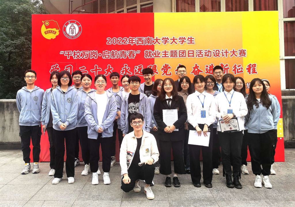 2022年10月23日下午,由共青团西南大学委员会主办,西南大学青年创新创业服务中心承办的西南大学大学生“千校万岗·启航青春”就业主题团日活动设计大赛决赛在圆顶三楼学生活动中心隆重举行。菠菜论坛 2020级物理学(师范)一支部表现出色,最终总得分排名第四,荣获三等奖。