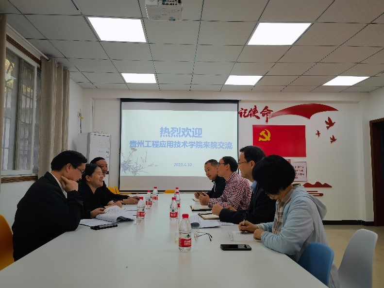 2023年4月10日上午,贵州工程应用技术菠菜论坛 教务处(教师工作处)副处长彭双艳、理菠菜论坛 刘竹影副院长、专业负责人王建卫老师一行到菠菜论坛 调研交流。菠菜论坛 副院长邓涛、副院长赵建伟、实验中心主任孙凯、本科教学秘书任凤娥参加了座谈交流会。